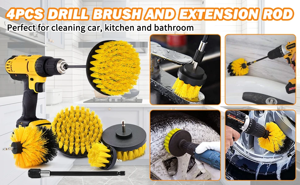 - 4inch/5inch Brush: great for wheel, tile, carpet, tire, toilet, upholstery, etc.